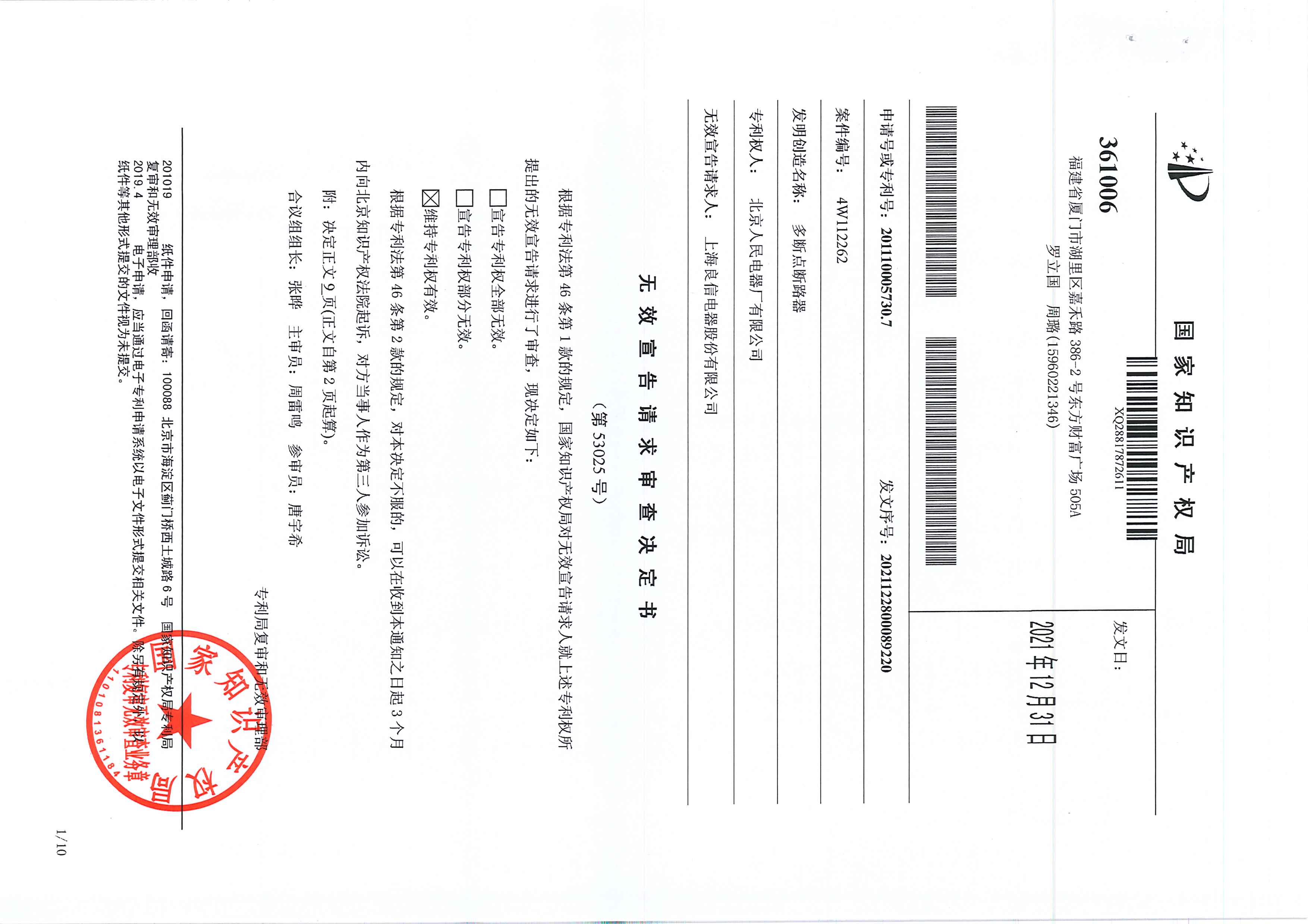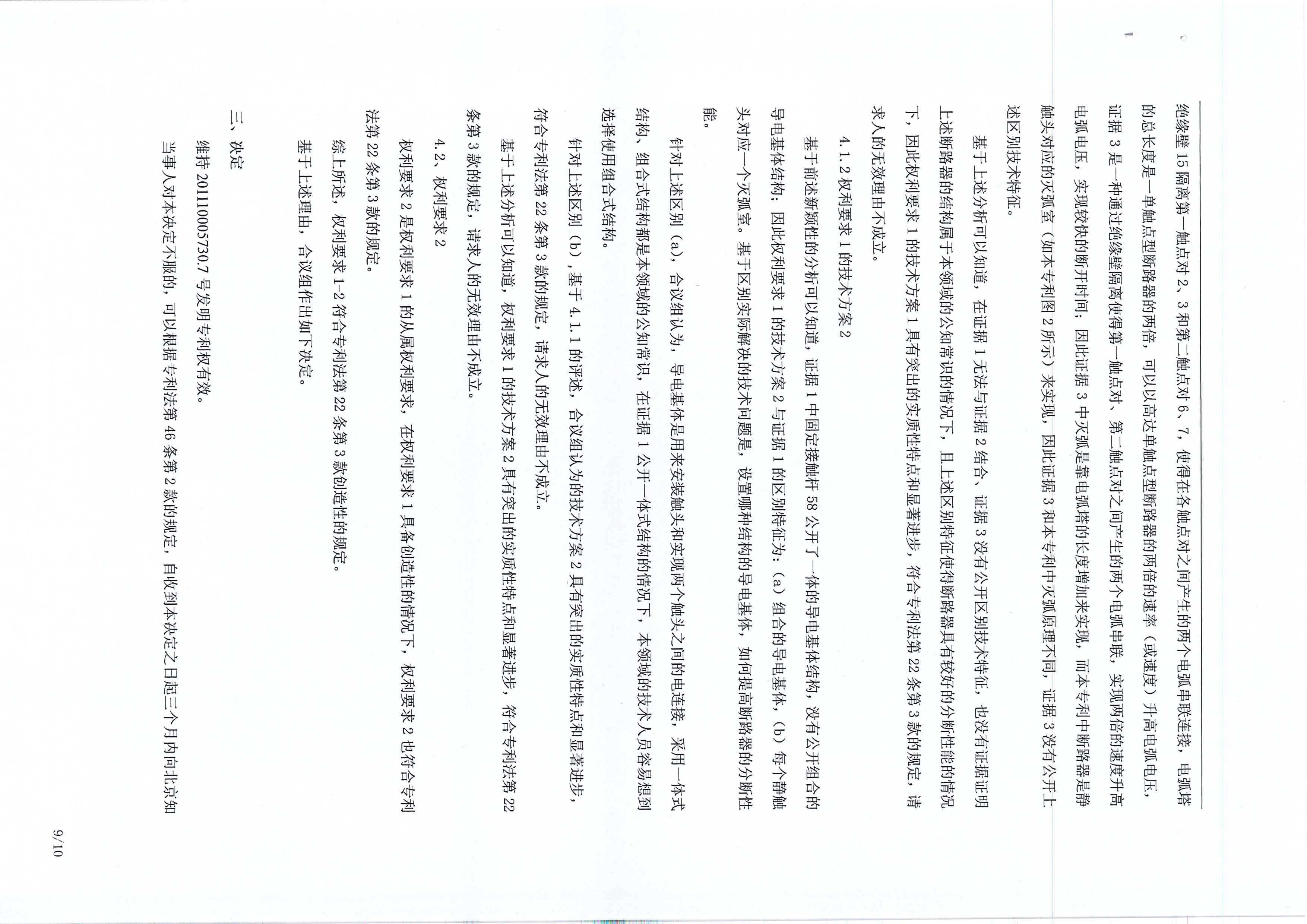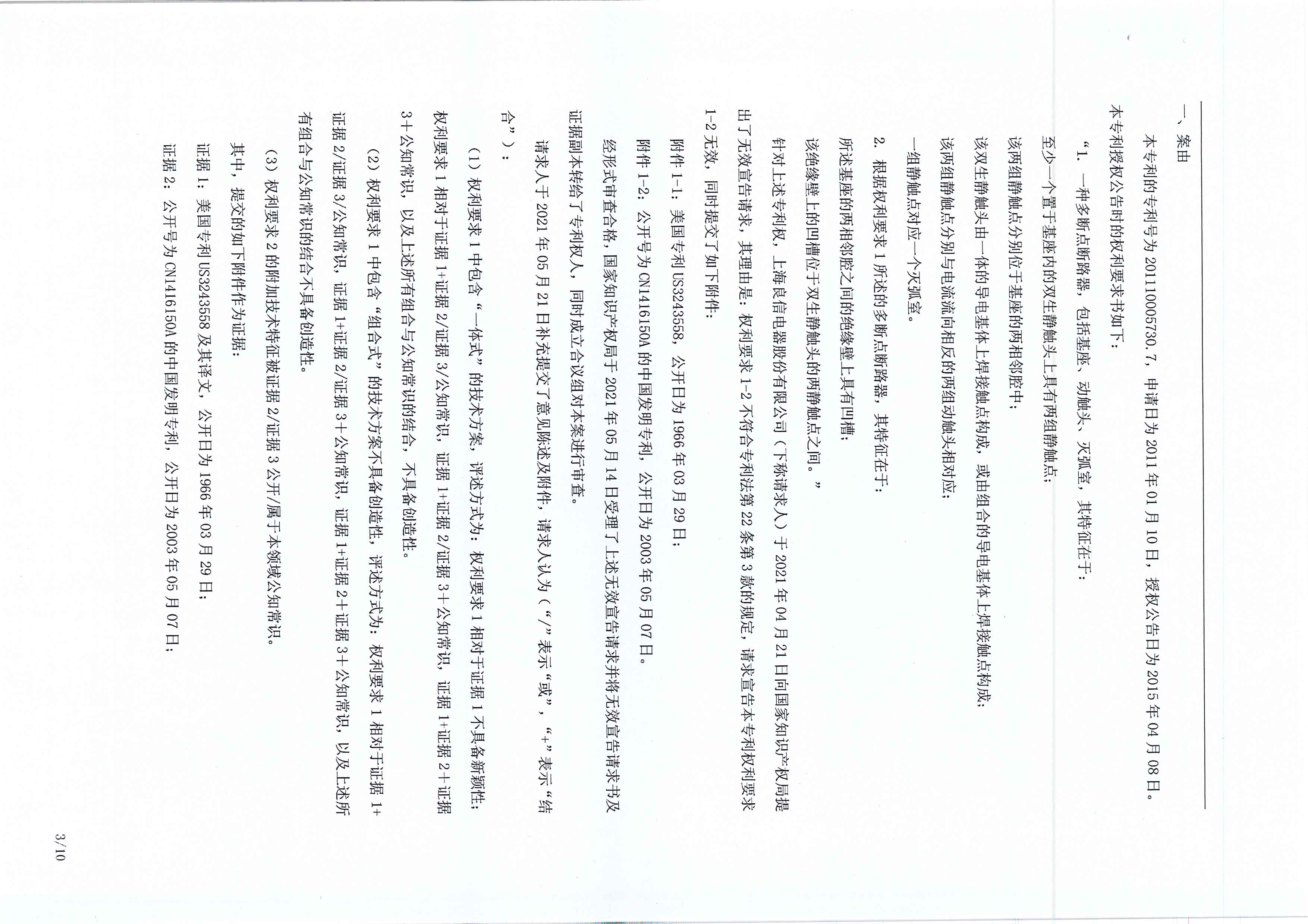 人民電器2011100057307無效宣告請求審查決定書-贏